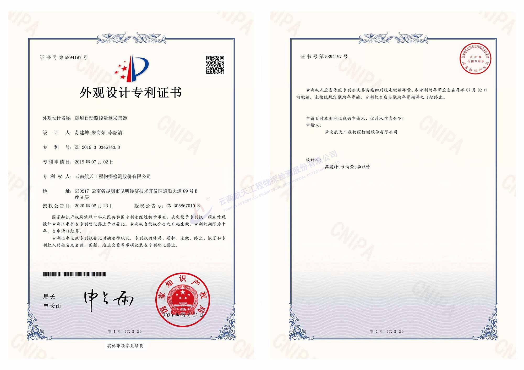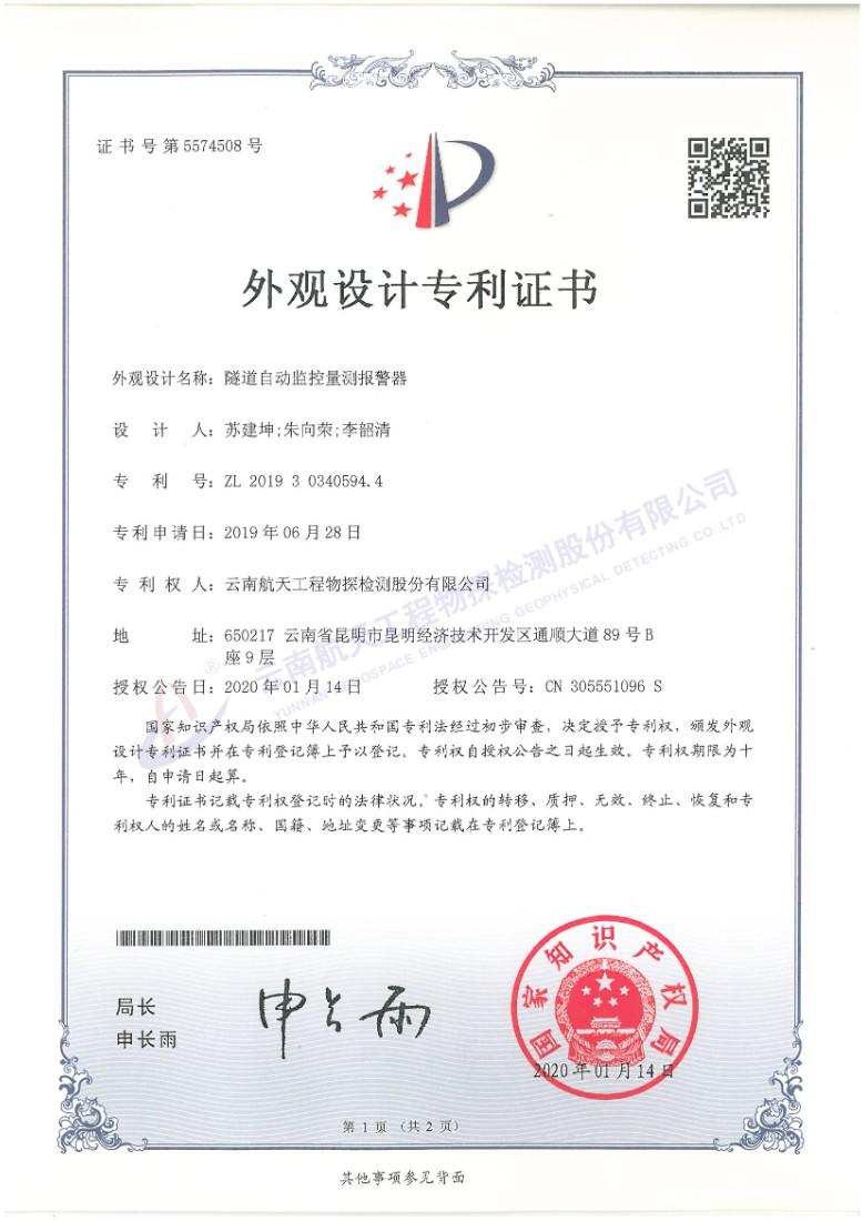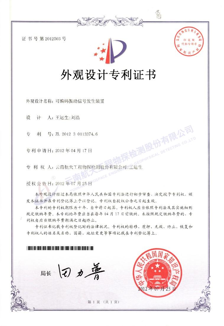 外觀專利證書