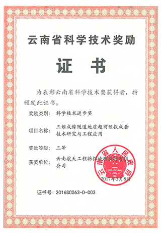云南省科學技術獎勵證書