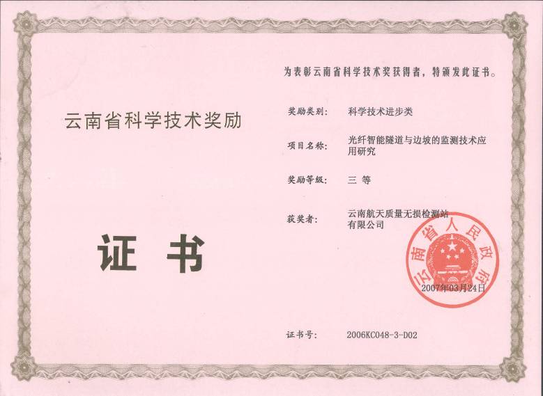 云南省科技進(jìn)步三等獎(jiǎng)