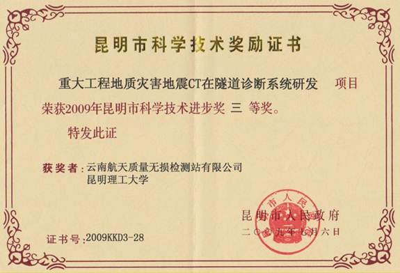 昆明市科技進(jìn)步三等獎(jiǎng)