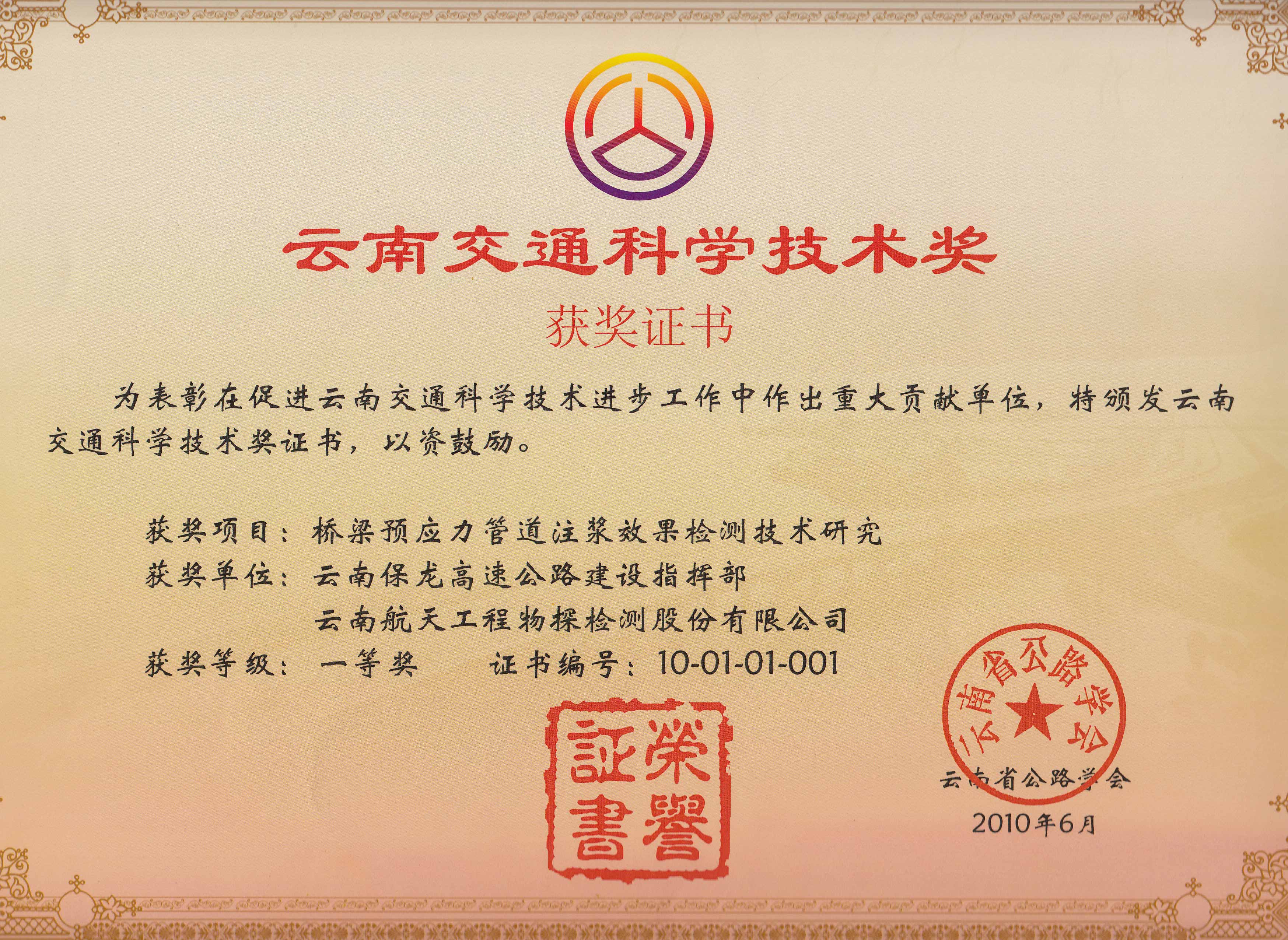 云南省交通科技進(jìn)步一等獎(jiǎng)