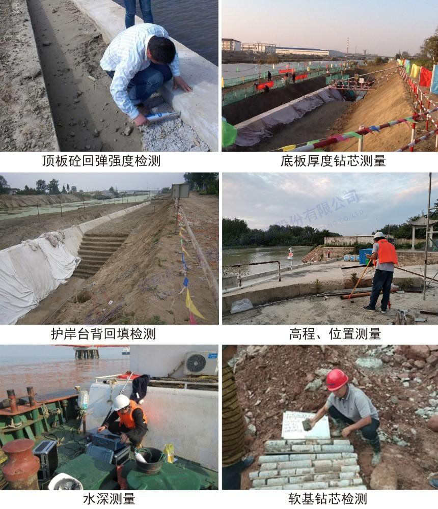 公司具有交通運輸部水運結構(地基)甲級、水運材料甲級檢測資質。具備開展港口碼頭工程、航道工程、船閘船塢等工程檢測技術能力。