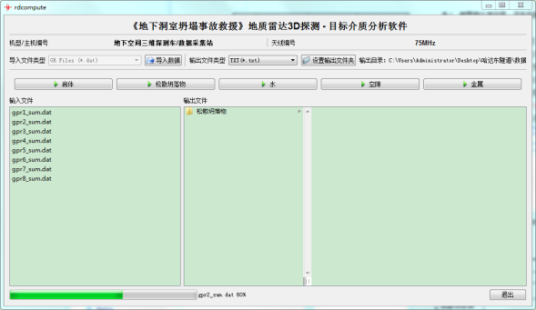 3、測控范圍:窗口2800ns,大于100次疊加。半球狀空間全覆蓋,水文地質有效解譯范圍:里程長度120m,周邊圍巖寬左右各50~70m,高上下各50~70m