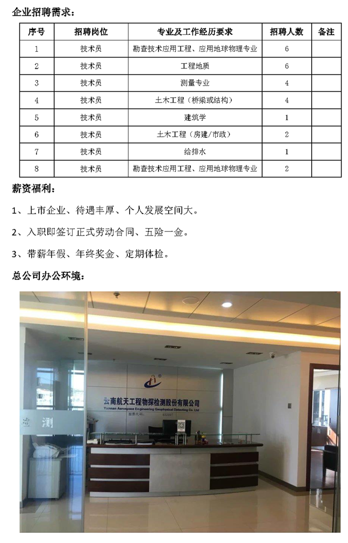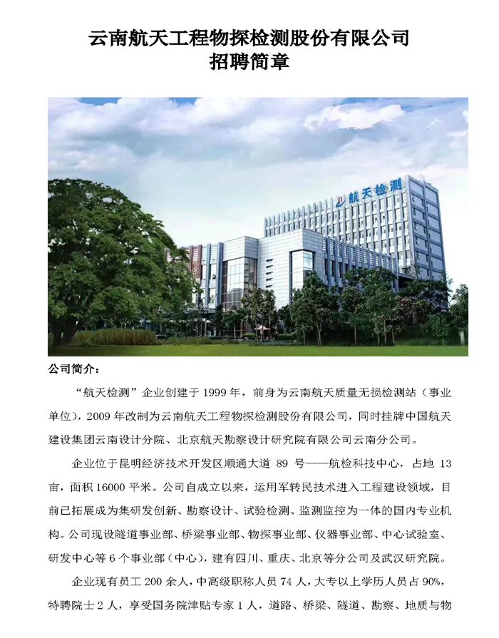 云南航天工程物探檢測股份有限公司 招聘簡章