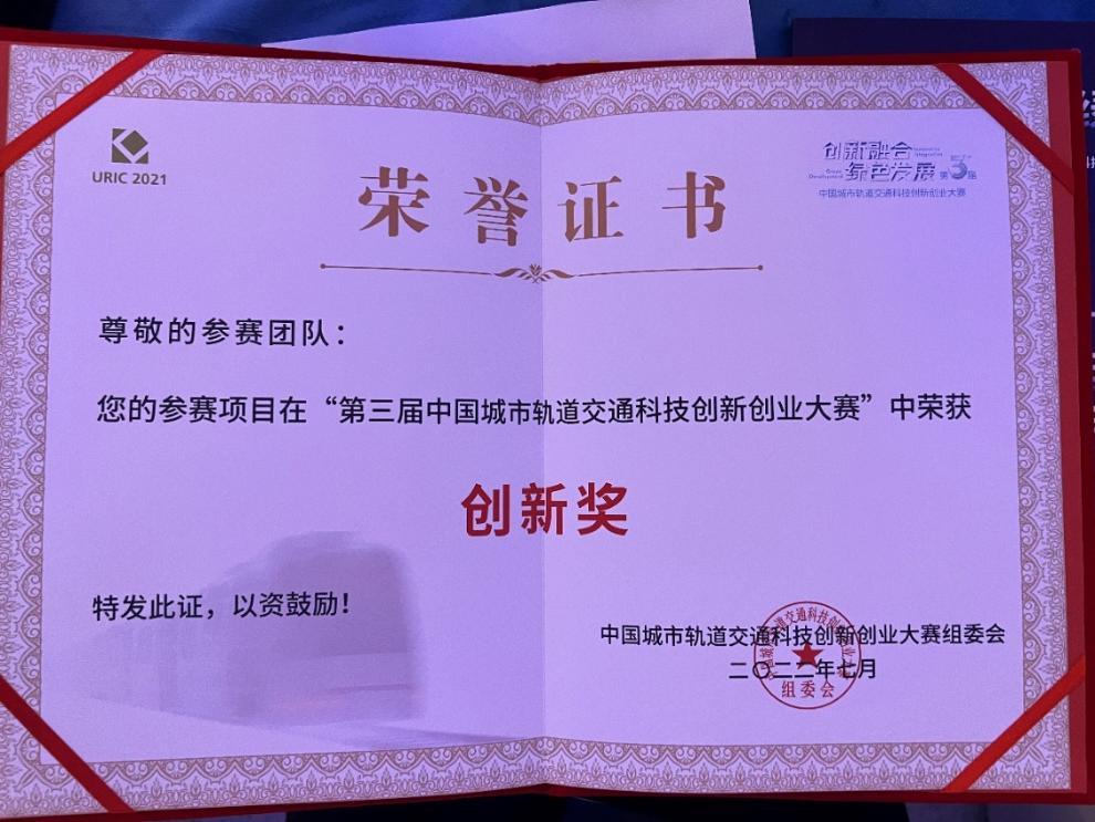 第三屆中國城市軌道交通科技創新創業大賽是中國城市軌道交通領域參與范圍最廣、參與人數最多、技術品牌最高的全國性公益大賽,共有上千個項目報名參賽,我司項目從全國400項復賽項目中脫穎而出,進入總決賽,喜獲“創新獎”。